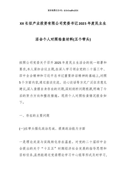 【七哥公文】2026年:XX长征产业投资有限公司党委书记2025年度民主生活会个人对照检查材料(五个带头)_副本+更多免费公文+VX:QiGeGongWen2024