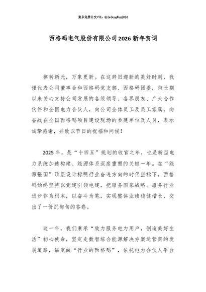 / 【七哥公文】2026年:西格码电气股份有限公司2026新年贺词_副本+更多免费公文+VX:QiGeGongWen2024