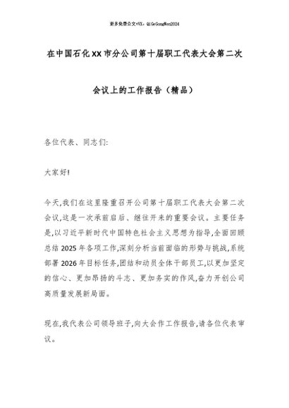 【七哥公文】2026年:在中国石化XX市分公司第十届职工代表大会第二次会议上的工作报告(精品)_副本+更多免费公文+VX:QiGeGongWen2024