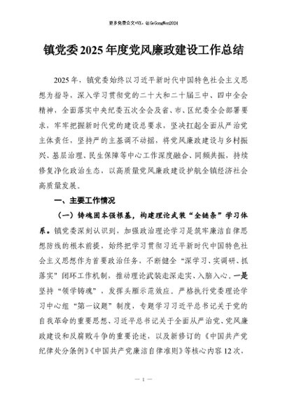 / 【七哥公文】2026年:镇党委2025年度党风廉政建设工作总结_副本+更多免费公文+VX:QiGeGongWen2024