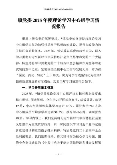 / 【七哥公文】2026年:镇党委2025年度理论学习中心组学习情况报告+更多免费公文+VX:QiGeGongWen2024