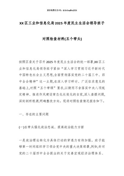 【七哥公文】2026年:XX区工业和信息化局2025年度民主生活会领导班子对照检查材料(五个带头)_副本+更多免费公文+VX:QiGeGongWen2024