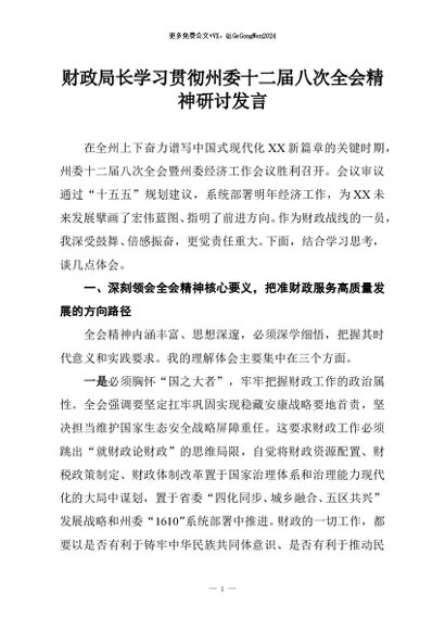 / 【七哥公文】2026年:财政局长学习贯彻州委十二届八次全会精神研讨发言+更多免费公文+VX:QiGeGongWen2024