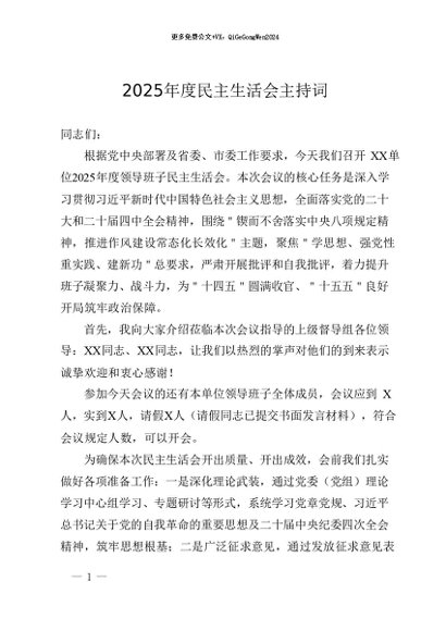 【七哥公文】2026年:2025年度民主生活会主持词+更多免费公文+VX:QiGeGongWen2024