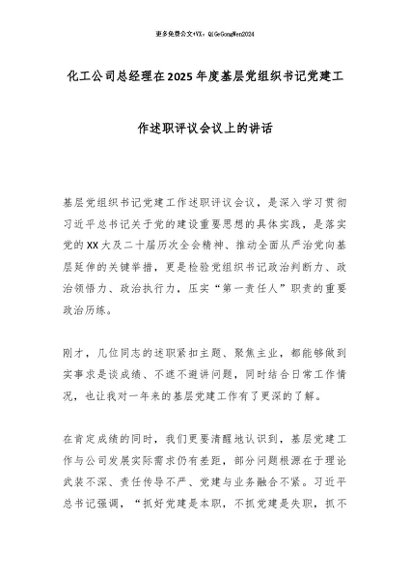 【七哥公文】2026年:化工公司总经理在2025年度基层党组织书记党建工作述职评议会议上的讲话_副本+更多免费公文+VX:QiGeGongWen2024