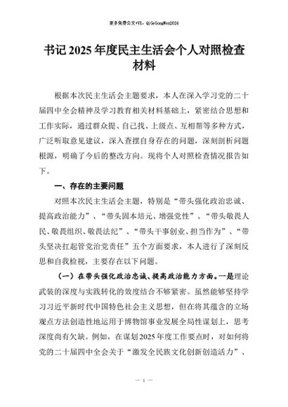/ 【七哥公文】2026年:书记2025年度民主生活会个人对照检查材料+更多免费公文+VX:QiGeGongWen2024