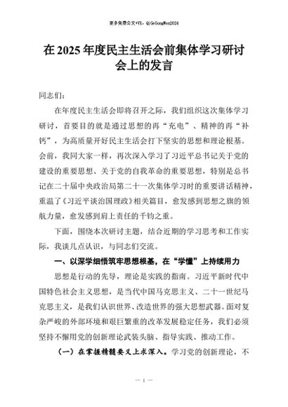 / 【七哥公文】2026年:在2025年度民主生活会前集体学习研讨会上的发言+更多免费公文+VX:QiGeGongWen2024
