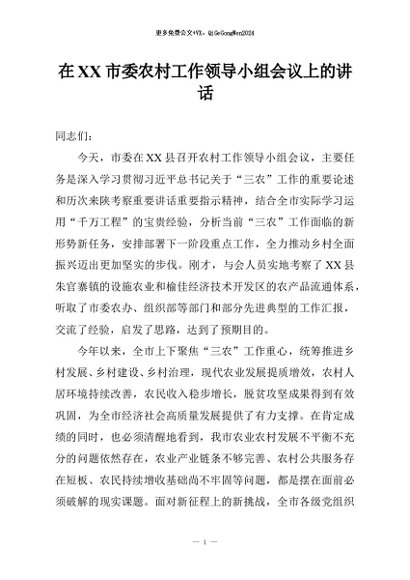 / 【七哥公文】2026年:在XX市委农村工作领导小组会议上的讲话+更多免费公文+VX:QiGeGongWen2024