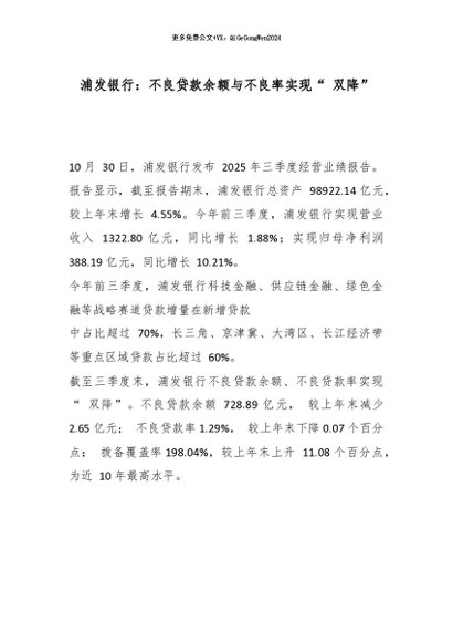 【七哥公文】2026年:浦发银行:不良贷款余额与不良率实现“ 双降”_副本+更多免费公文+VX:QiGeGongWen2024
