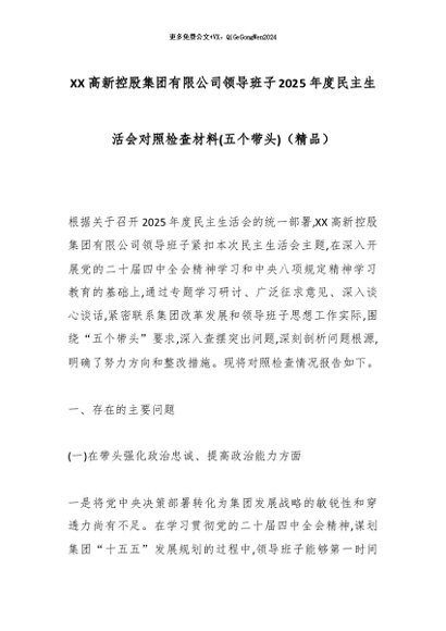 【七哥公文】2026年:XX高新控股集团有限公司领导班子2025年度民主生活会对照检查材料(五个带头)(精品)_副本+更多免费公文+VX:QiGeGongWen2024