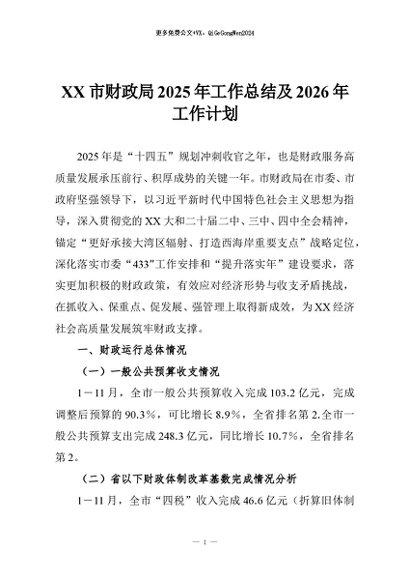 【七哥公文】2026年:XX市财政局2025年工作总结及2026年工作计划_副本+更多免费公文+VX:QiGeGongWen2024