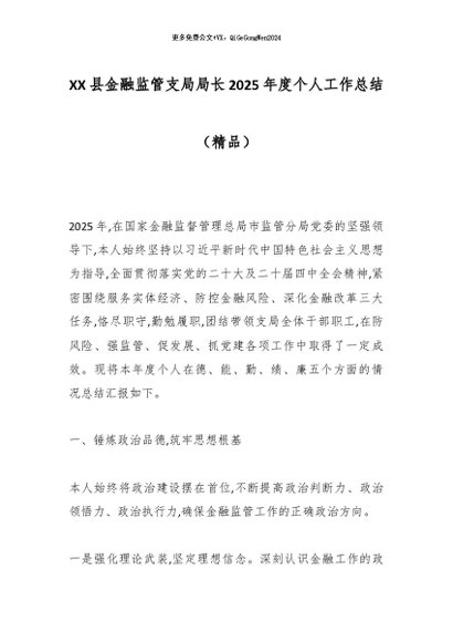 【七哥公文】2026年:XX县金融监管支局局长2025年度个人工作总结(精品)_副本+更多免费公文+VX:QiGeGongWen2024