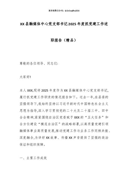 【七哥公文】2026年:XX县融媒体中心党支部书记2025年度抓党建工作述职报告(精品)_副本+更多免费公文+VX:QiGeGongWen2024