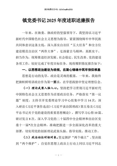 【七哥公文】2026年:镇党委书记2025年度述职述廉报告+更多免费公文+VX:QiGeGongWen2024