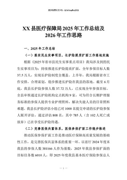【七哥公文】2026年:XX县医疗保障局2025年工作总结及2026年工作思路_副本+更多免费公文+VX:QiGeGongWen2024