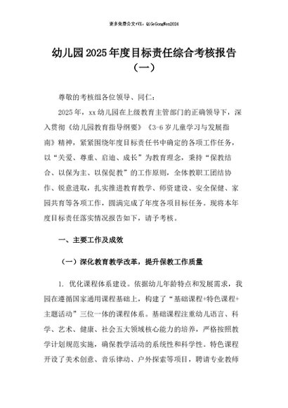/ 【七哥公文】2026年:幼儿园2025年度目标责任综合考核报告(一)+更多免费公文+VX:QiGeGongWen2024