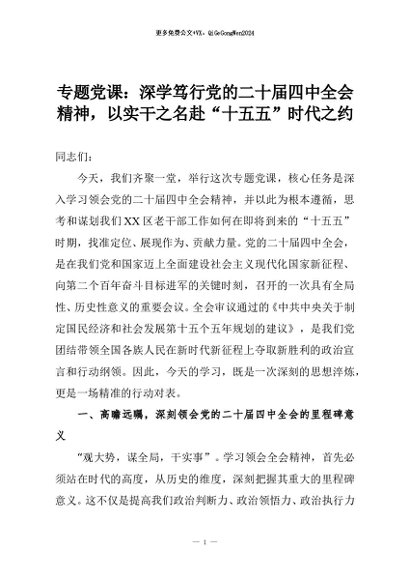 【七哥公文】2026年:专题党课:深学笃行党的二十届四中全会精神,以实干之名赴“十五五”时代之约+更多免费公文+VX:QiGeGongWen2024