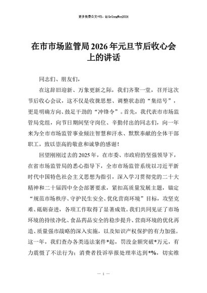 / 【七哥公文】2026年:在市市场监管局2026年元旦节后收心会上的讲话+更多免费公文+VX:QiGeGongWen2024