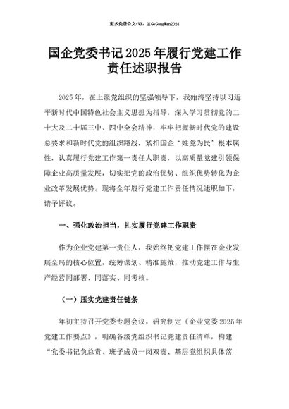 / 【七哥公文】2026年:国企党委书记2025年履行党建工作责任述职报告+更多免费公文+VX:QiGeGongWen2024