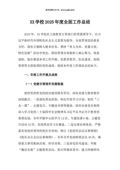 / 【七哥公文】2026年:XX学校2025年度全面工作总结+更多免费公文+VX:QiGeGongWen2024