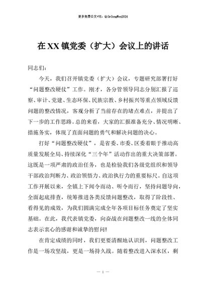 / 【七哥公文】2026年:在XX镇党委(扩大)会议上的讲话+更多免费公文+VX:QiGeGongWen2024