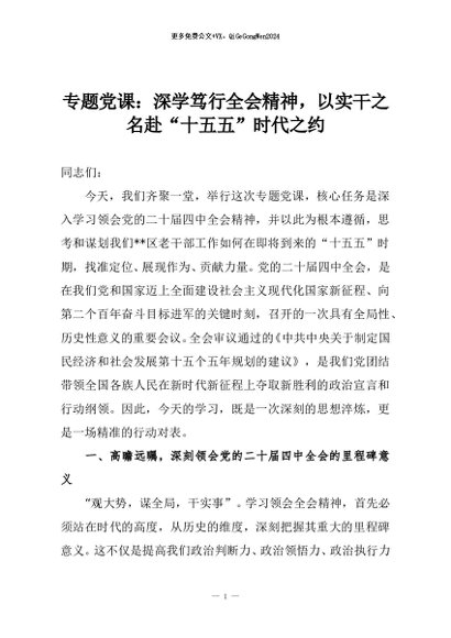 【七哥公文】2026年:专题党课:深学笃行全会精神,以实干之名赴“十五五”时代之约+更多免费公文+VX:QiGeGongWen2024