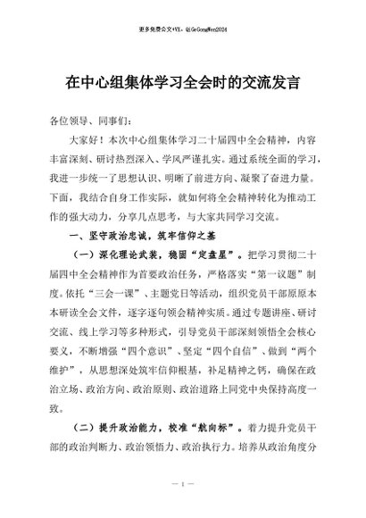 / 【七哥公文】2026年:在中心组集体学习全会时的交流发言+更多免费公文+VX:QiGeGongWen2024