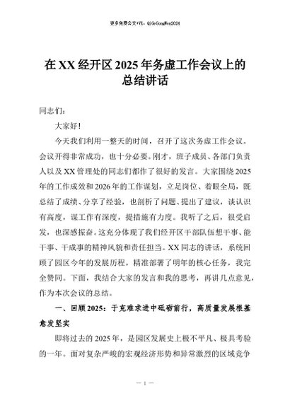 / 【七哥公文】2026年:在XX经开区2025年务虚工作会议上的总结讲话+更多免费公文+VX:QiGeGongWen2024
