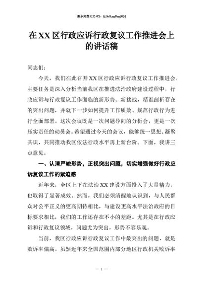 / 【七哥公文】2026年:在XX区行政应诉行政复议工作推进会上的讲话稿+更多免费公文+VX:QiGeGongWen2024