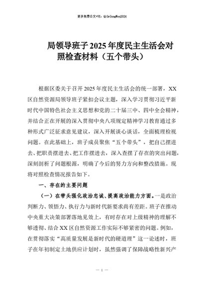 【七哥公文】2026年:局领导班子2025年度民主生活会对照检查材料(五个带头)_副本+更多免费公文+VX:QiGeGongWen2024