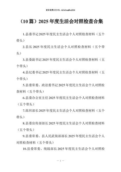 / 【七哥公文】2026年:(10篇)2025年度生活会对照检查合集_副本+更多免费公文+VX:QiGeGongWen2024