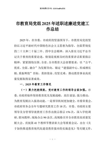 / 【七哥公文】2026年:市教育局党组2025年述职述廉述党建工作总结_副本+更多免费公文+VX:QiGeGongWen2024
