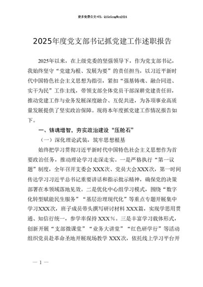 / 【七哥公文】2026年:2025年度党支部书记抓党建工作述职报告+更多免费公文+VX:QiGeGongWen2024