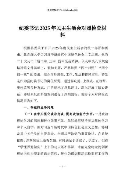 / 【七哥公文】2026年:纪委书记2025年民主生活会对照检查材料_副本+更多免费公文+VX:QiGeGongWen2024