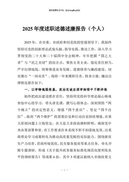 / 【七哥公文】2026年:2025年度述职述德述廉报告(个人)+更多免费公文+VX:QiGeGongWen2024