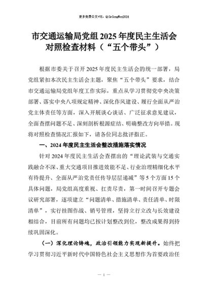 【七哥公文】2026年:市交通运输局党组2025年度民主生活会对照检查材料(“五个带头”)_副本+更多免费公文+VX:QiGeGongWen2024