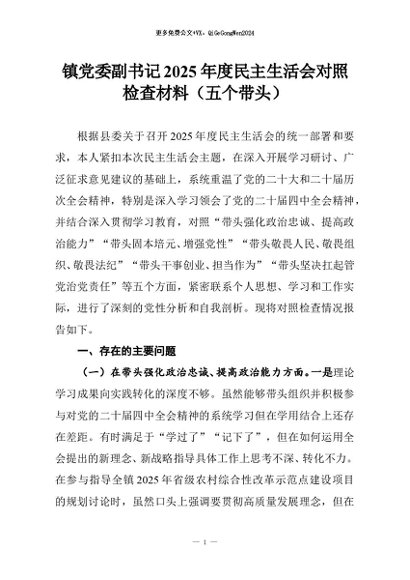 【七哥公文】2026年:镇党委副书记2025年度民主生活会对照检查材料(五个带头)_副本+更多免费公文+VX:QiGeGongWen2024