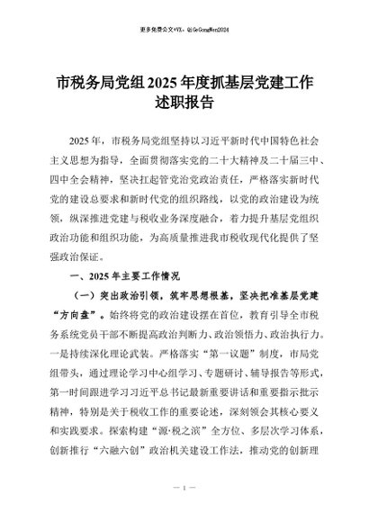 【七哥公文】2026年:市税务局党组2025年度抓基层党建工作述职报告_副本+更多免费公文+VX:QiGeGongWen2024