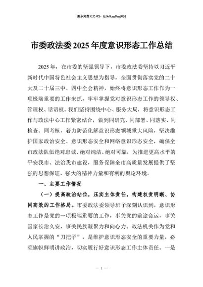 / 【七哥公文】2026年:市委政法委2025年度意识形态工作总结_副本+更多免费公文+VX:QiGeGongWen2024