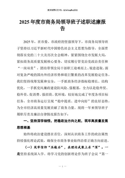 / 【七哥公文】2026年:2025年度市商务局领导班子述职述廉报告+更多免费公文+VX:QiGeGongWen2024