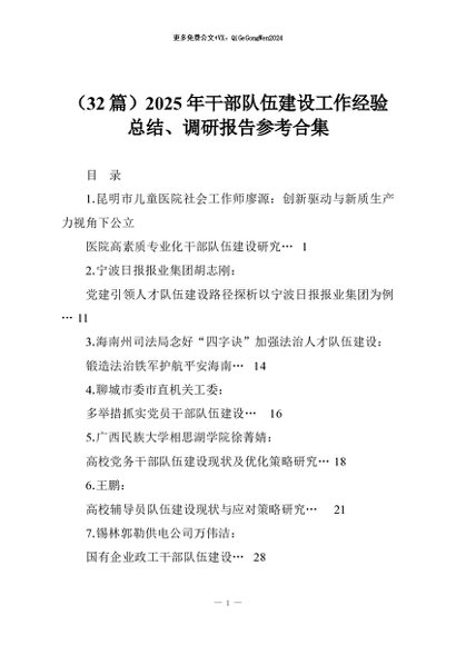 【七哥公文】2026年:(32篇)2025年干部队伍建设工作经验总结、调研报告参考合集_副本+更多免费公文+VX:QiGeGongWen2024