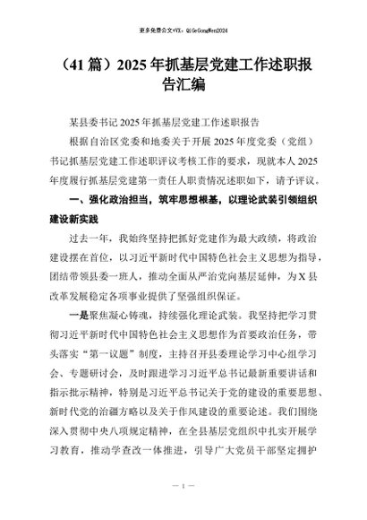 【七哥公文】2026年:(41篇)2025年抓基层党建工作述职报告汇编_副本+更多免费公文+VX:QiGeGongWen2024