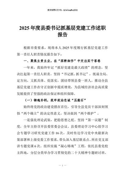 / 【七哥公文】2026年:2025年度县委书记抓基层党建工作述职报告+更多免费公文+VX:QiGeGongWen2024