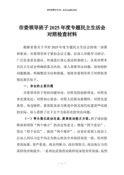 【七哥公文】2026年:市委领导班子2025年度专题民主生活会对照检查材料_副本+更多免费公文+VX:QiGeGongWen2024