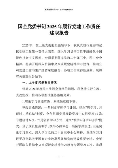 【七哥公文】2026年:国企党委书记2025年履行党建工作责任述职报告_副本+更多免费公文+VX:QiGeGongWen2024