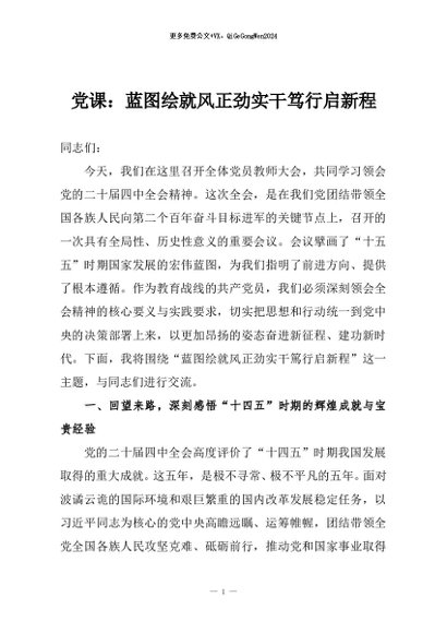 / 【七哥公文】2026年:党课:蓝图绘就风正劲实干笃行启新程+更多免费公文+VX:QiGeGongWen2024