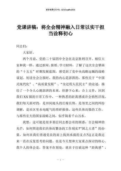 / 【七哥公文】2026年:党课讲稿:将全会精神融入日常以实干担当诠释初心+更多免费公文+VX:QiGeGongWen2024