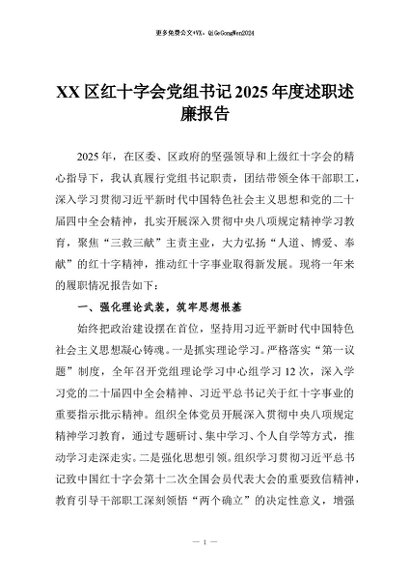 【七哥公文】2026年:XX区红十字会党组书记2025年度述职述廉报告_副本+更多免费公文+VX:QiGeGongWen2024