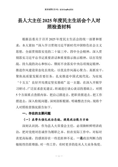 【七哥公文】2026年:县人大主任2025年度民主生活会个人对照检查材料_副本+更多免费公文+VX:QiGeGongWen2024