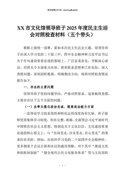【七哥公文】2026年:XX市文化馆领导班子2025年度民主生活会对照检查材料(五个带头)_副本+更多免费公文+VX:QiGeGongWen2024